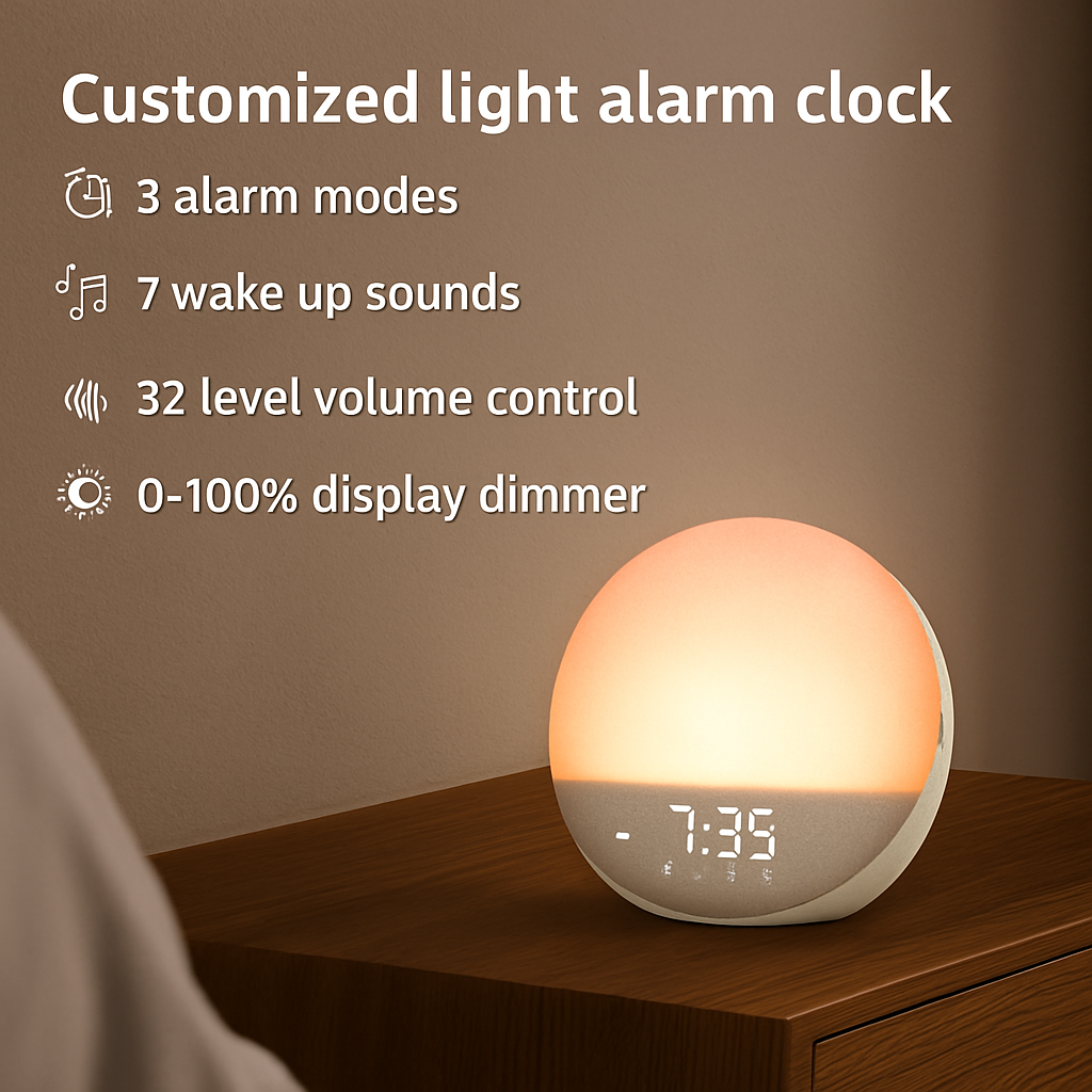 The GlowRise Clock blocks distractions, calms your mind, and helps you fall asleep faster — perfect for adults, students, and babies.